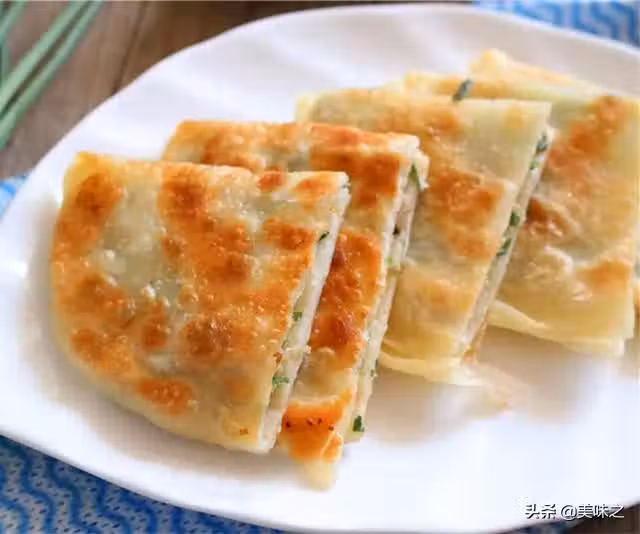 9、將煎好的餡餅取出,用吸油紙吸去多餘的油分,切塊擺盆即成。
