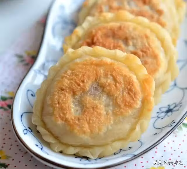 9、將另外一張皮蓋在上面,周邊用手捏嚴;想要好看就捏點花邊,順便還能將餡餅的形狀做個調整;不會包餡餅不要緊,咱們就兩張皮一對捏成「合子」,而且還不擔心中間有那個厚疙瘩;