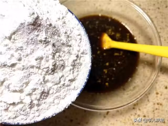 5,最後攪拌至沒有乾麵粉顆粒流水狀的麵糊即可。