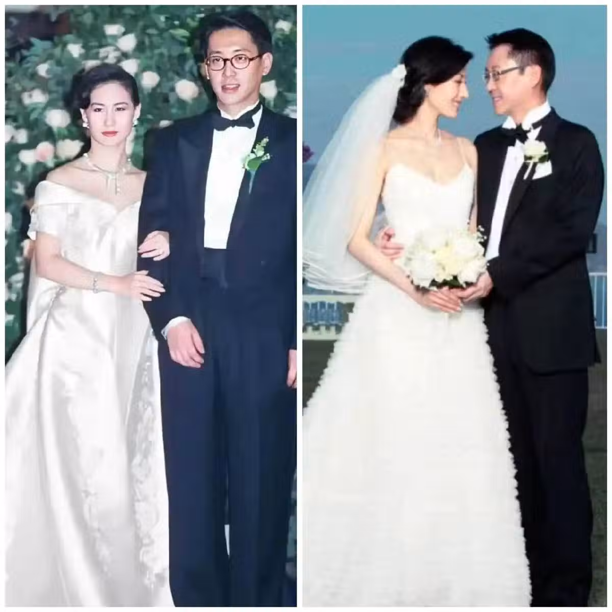 以前有人說許晉亨不愛江山只愛美人,這句話也不完全對,因為何超瓊和許晉亨結婚時的合影照不比他後面和李嘉欣的結婚照差啊!