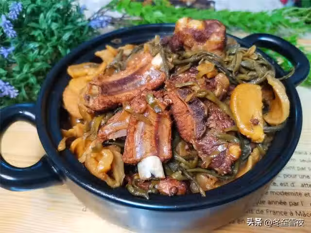 9.到時間後,開大火收汁,剩少許湯汁時,關火,一鍋香味四溢的排骨燉乾菜就做好了。
