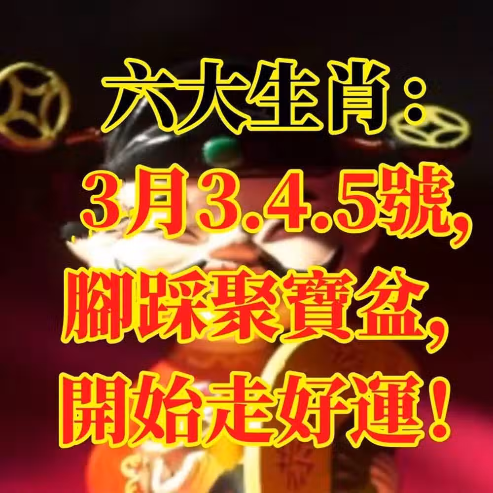3月3.4.5號開始,腳踩聚寶盆的6生肖,開始走好運!