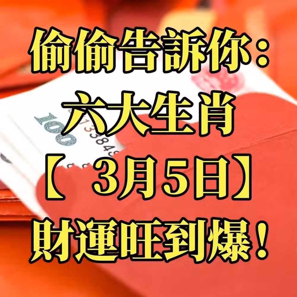 偷偷告訴你:六大生肖【3月5日】財運旺到爆!