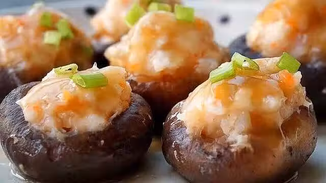 把腌漬好的肉餡塞進香菇壓實。
