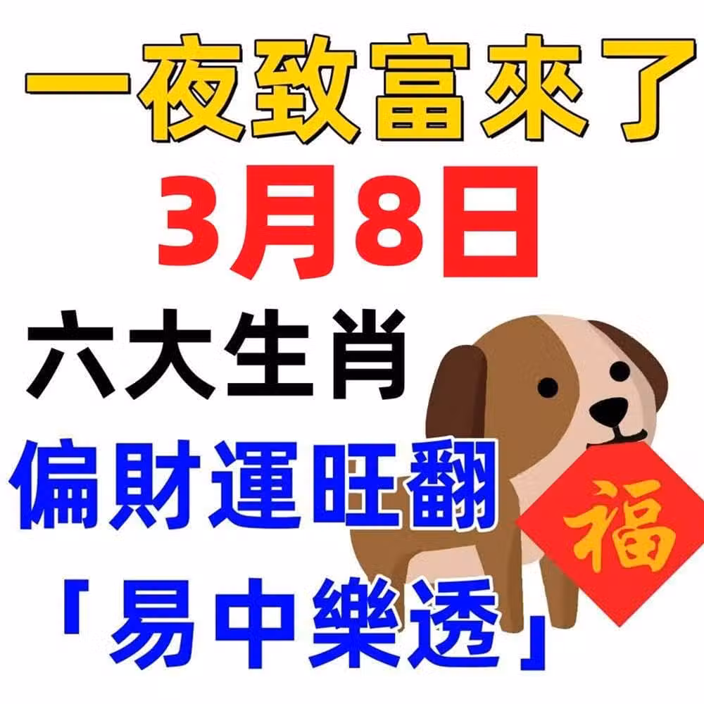 一夜致富來了!3月8日,偏財運旺翻「易中樂透」的生肖!