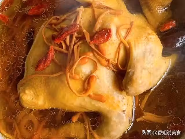 準備食材:鴿子,黃芪,黨參,紅棗,蟲草花,薑片,枸杞子。