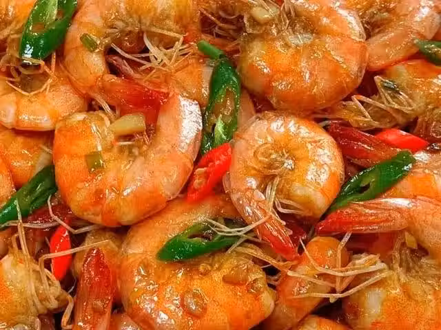準備食材:大蝦,蒜末,青線椒,小米辣,薑絲,蔥花,花椒。