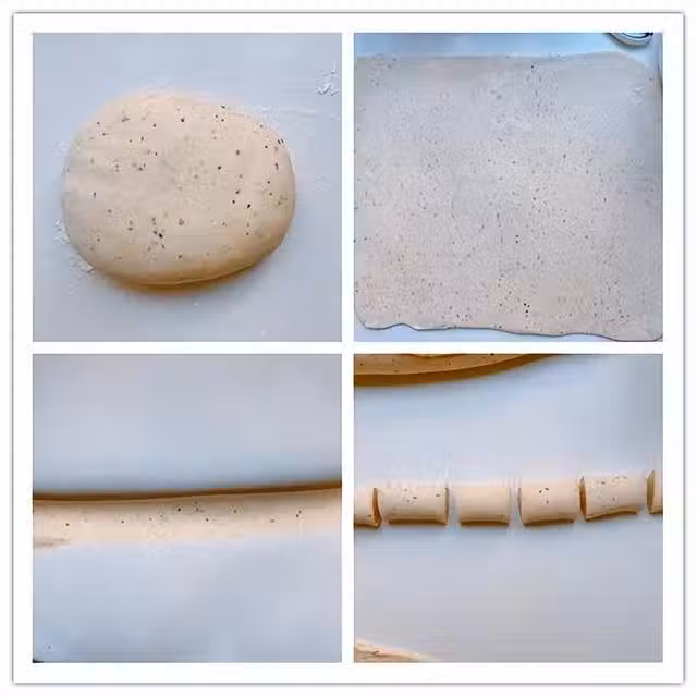 6、切好的麵糰放在蒸屜上餳發,蓋上蓋子,大約餳發45分鐘,冬天氣溫低,餳發的時候可能還需要久一些,餳發到麵包的體積明顯變大,輕輕按壓會回彈,說明餳發好了。