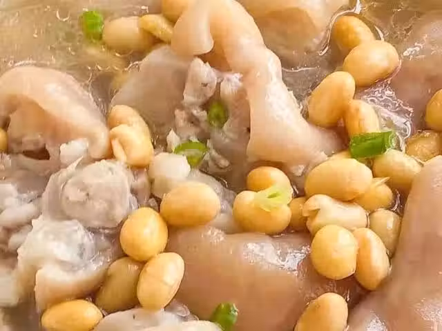 準備食材:豬蹄,黃豆,薑片,蔥花。