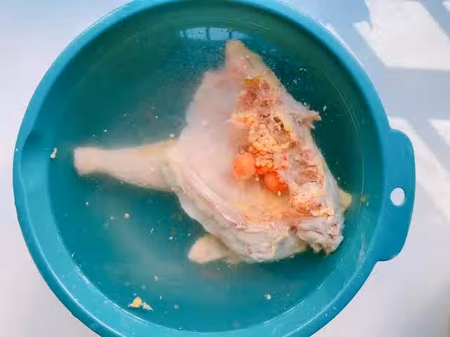 然後把豬肚翻過來,裡面再抓洗一遍,如果豬肚裡面的油脂較多,可以用剪刀剪掉一些,再次清洗乾淨,豬肚就處理好了;