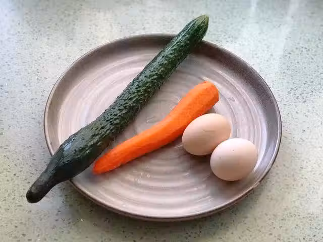 3、黃瓜絲上撒少許的鹽腌出水分,腌好後除去水分晾乾或者用廚房紙吸干水分,鍋內刷一層油,將胡蘿蔔絲放進鍋中小火煎至變軟,雞蛋打入碗中,加適量的鹽,鍋燒熱倒入適量的食用油,然後倒入三分之一的蛋液,待蛋液凝固後,將蛋餅折成兩折,留下三分之一的寬度,將摺疊的蛋餅推到鍋的一邊,然後繼續倒入三分之一的蛋液,重複剛才的操作,直到蛋液倒完。