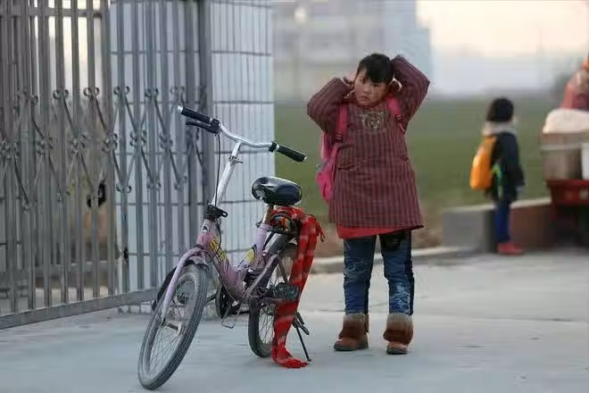 一般孩子這樣摔了都會哇哇大哭,可這女同學卻一聲不吭,沒叫人呼救,自己堅強地爬了起來,撿起書包,拉起單車就想推著去小溪邊清洗。