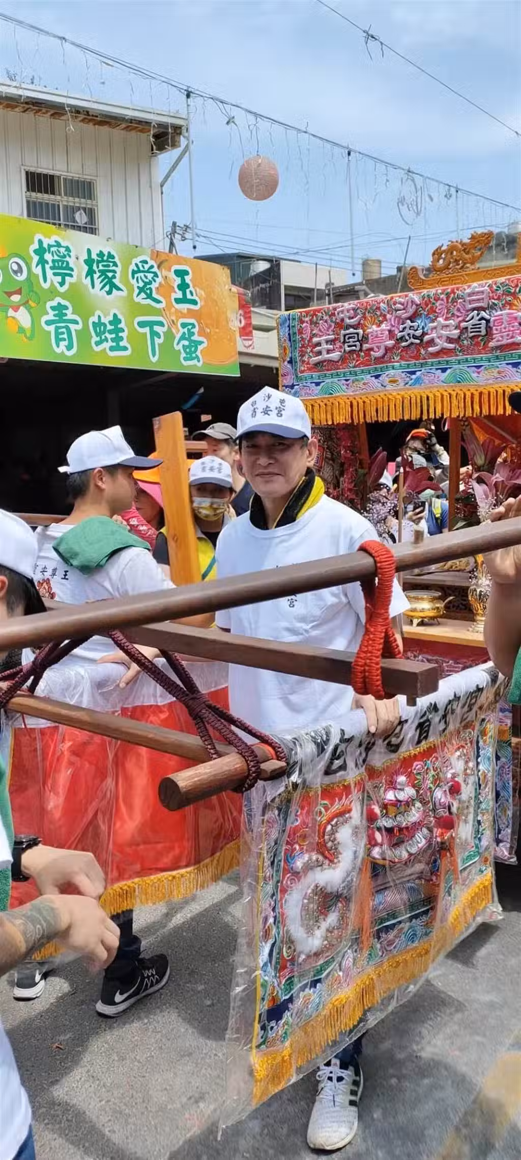 他當時直呼是扛神轎初體驗:「前一天去大甲迎媽祖、鑽腳底,今天來白沙屯扛轎,真的很有壓力、很緊張,覺得自己何德何能,竟有機會能為白沙屯媽祖扛轎!真的很感動!」如今再度現身白沙屯媽祖進香,也引起關注。