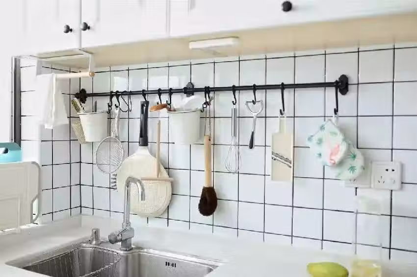有些廚房清潔用的抹布、刷子掛起來收納更加干凈整潔,要用的時候也更加順手。