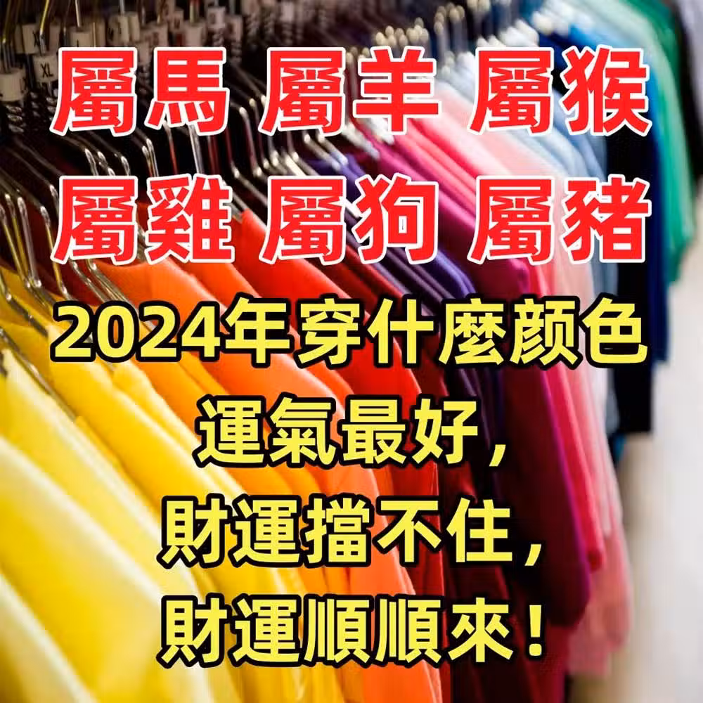 「屬馬、羊、猴、雞、狗、豬人 」2024年穿什麼顏色運氣最好,財運擋不住,財運順順來!