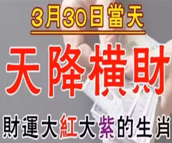 3月30號天降橫財,財運【大紅大紫】的生肖!