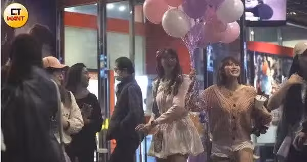 ▲啦啦隊員檸檬(左起)、蓁蓁、陳伊等人見證豆芽被求婚成功的幸福片刻。(圖/本刊攝影組)