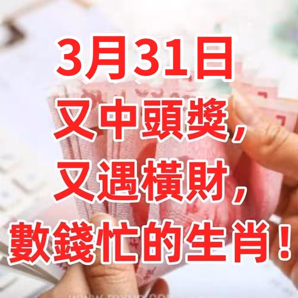 3月31日(3月最後一天)又中頭獎,又遇橫財,數錢忙的生肖!