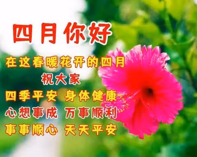 2、在這春暖花開的四月,祝大家:四季平安,身體健康,心想事成,萬事順利,事事順心,天天平安,4月你好