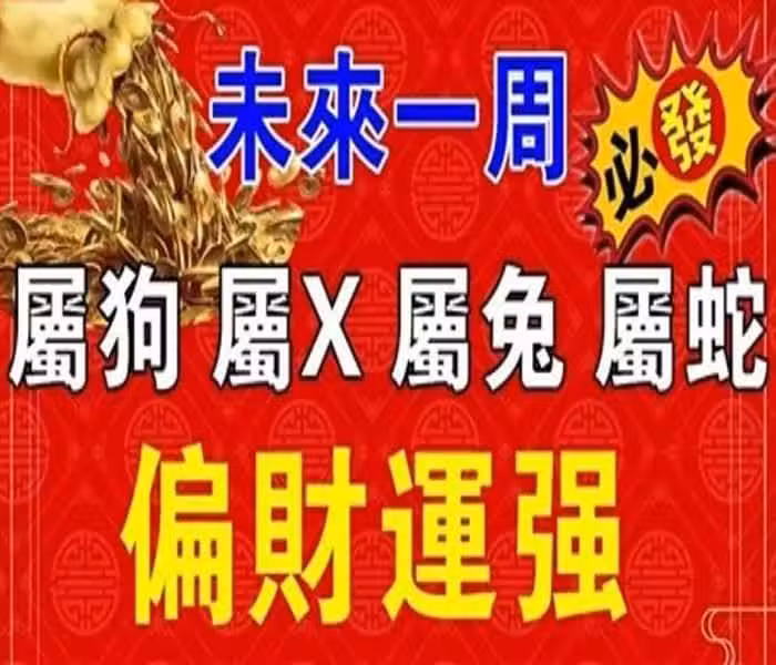 未來一周(屬狗 屬X 屬兔 屬蛇)得財神爺庇佑,財運旺盛,日後大富大貴