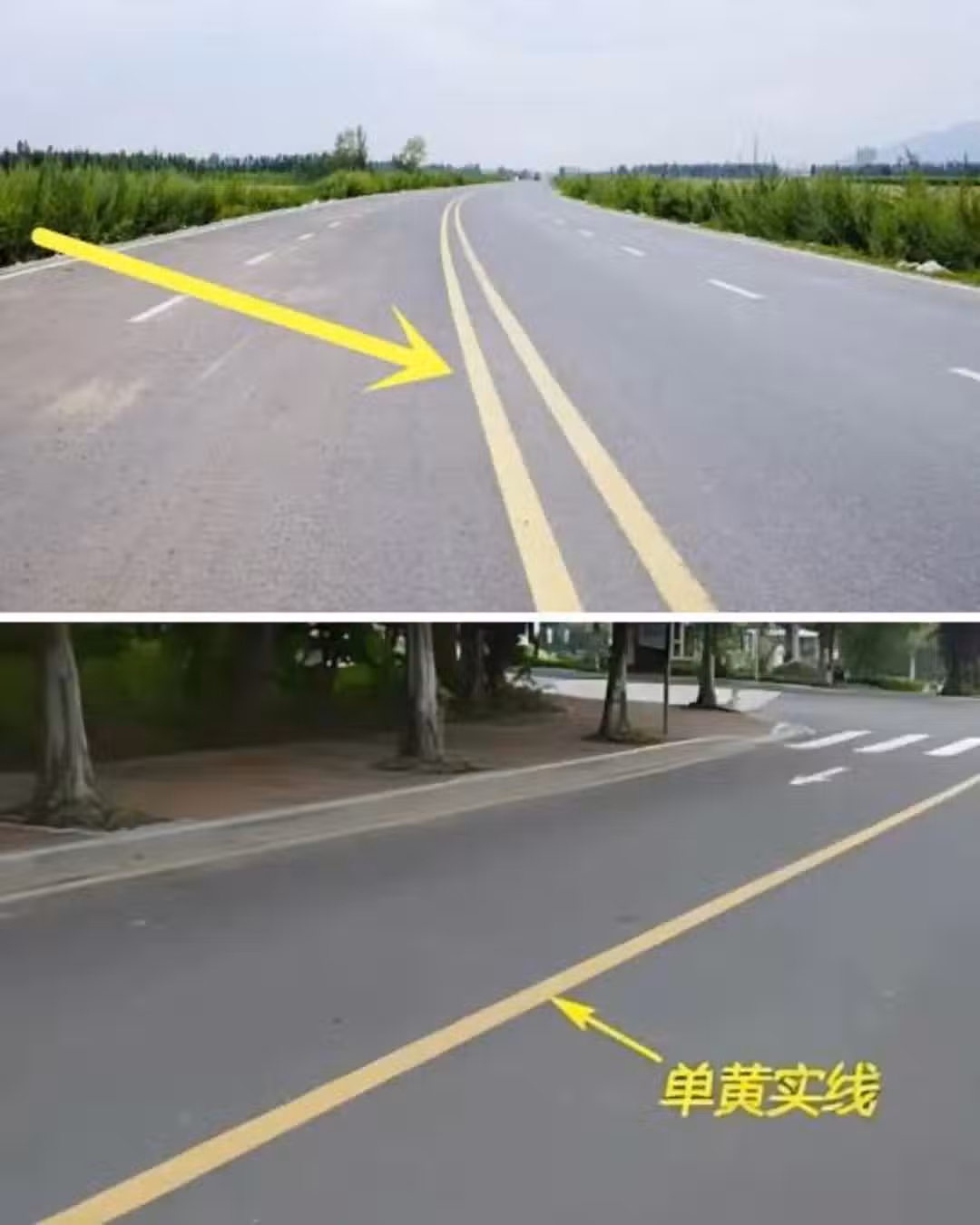 一般單方向只有一條機動車道時用單黃線,用於分隔對向行駛的交通流,因為道路本身較窄,用單黃線可以節省道路的占用,給車道留出足夠的寬度。