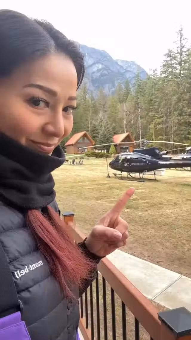 滕麗名夫婦豪游加拿大!出入別墅搭直升機滑雪挑戰10萬英呎雪山