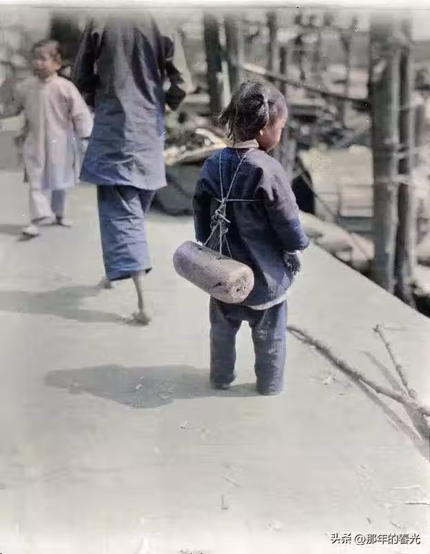 在廣州市的一處水岸邊,一名女童背著一個類似於泡沫的東西,在當時,很多漁民沒有時間照顧孩子,為了防止溺水,只能在孩子的身上綁上一個漂浮物,這樣如果有意外發生的話,還有很大的機率可以救下孩子的性命。