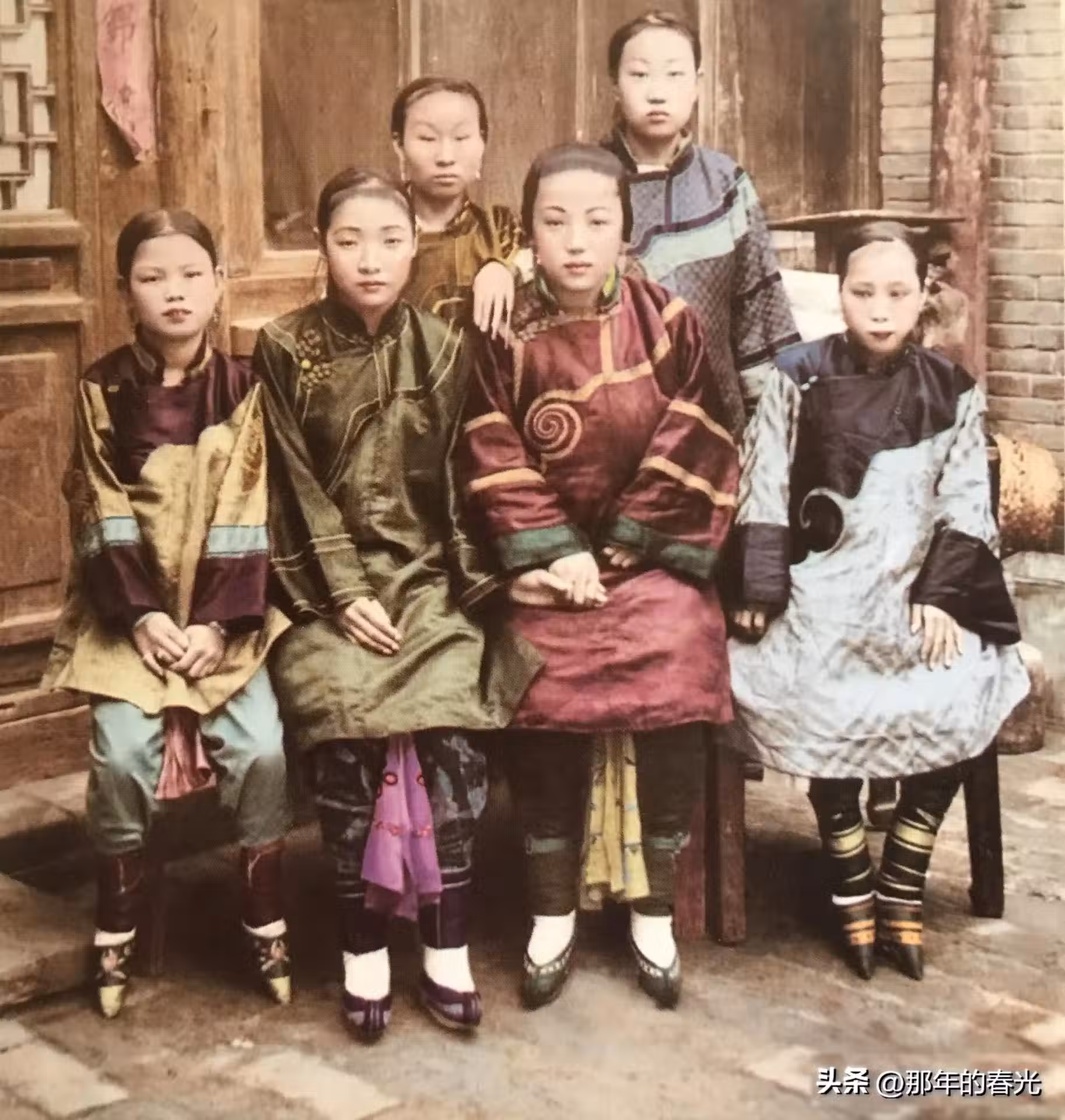 照片中的六名女子是一個大戶人家中的妻妾,對於當時的很多女子來說,如果能夠嫁到在大戶人家做小妾,也是一件很幸福的事情,畢竟可以保證自己的下半生衣食無憂。