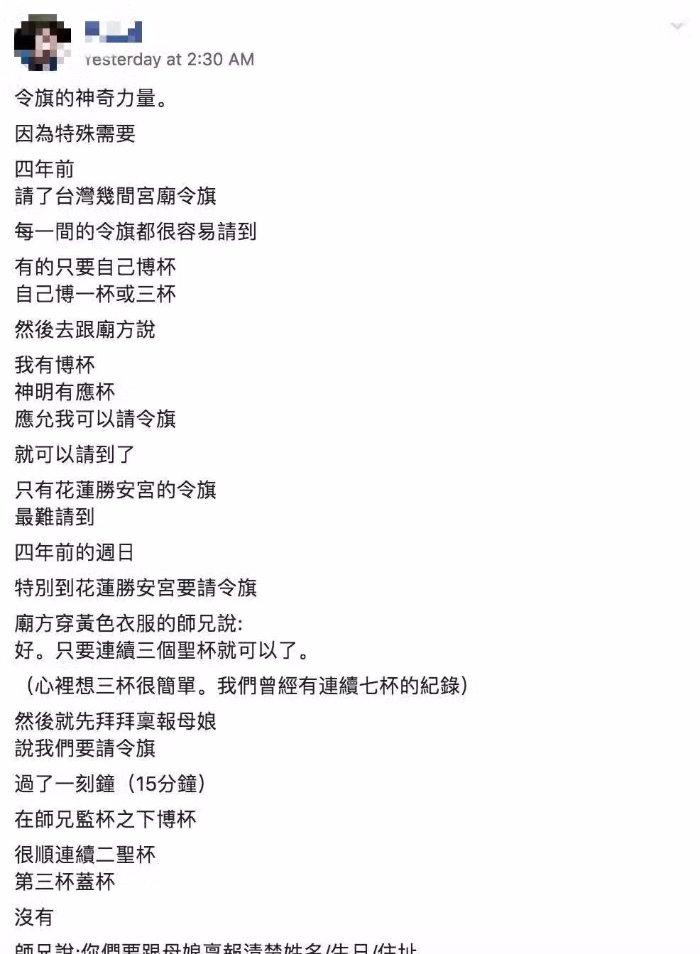 看完他的經歷後,網友們也忍不住驚嘆,紛紛留言表示「真的不能小看令旗」、「無形中的提醒,讓你躲了不少劫啊」、「王母娘娘慈悲」。最後也有不少人好奇,請令旗到底有什麼作用?對此,就有專業網友解答,其實每一支令旗都代表著一位神尊,通常信徒請回家,是可以拿來鎮宅保平安的。