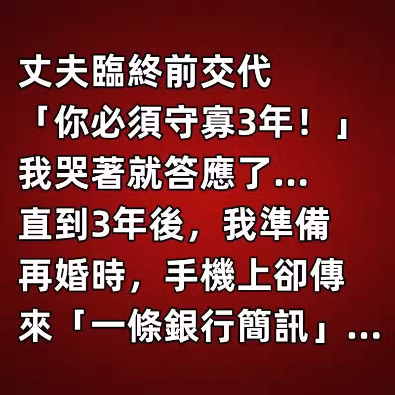 丈夫臨終前交代「你必須守寡3年!」我哭著就答應了… 直到3年後,我準備再婚時,手機上卻傳來「一條銀行簡訊」…