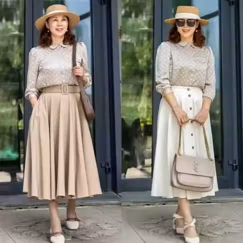 除了色彩搭配,身材線條的處理也非常重要。中年女人可以選擇一些剪裁得當、顯瘦的衣物款式,如H型、A型等半身裙,這些款式能夠有效地遮蓋身材的不足之處。