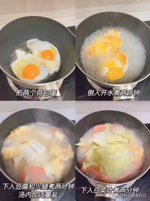 材料:雞蛋,蝦仁,白玉菇,蟹味菇,豆腐,鹽,蔥花。