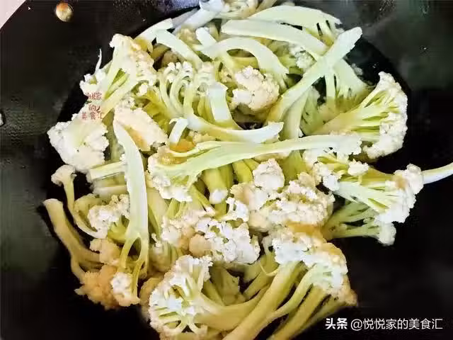 在焯水的時候記得加入食鹽和食用油,能夠確保花菜的顏色翠綠,口感脆爽,撈出來之後鍋里的不要倒掉了,把口蘑倒入鍋中焯一下水,吃起來會更加鮮美。