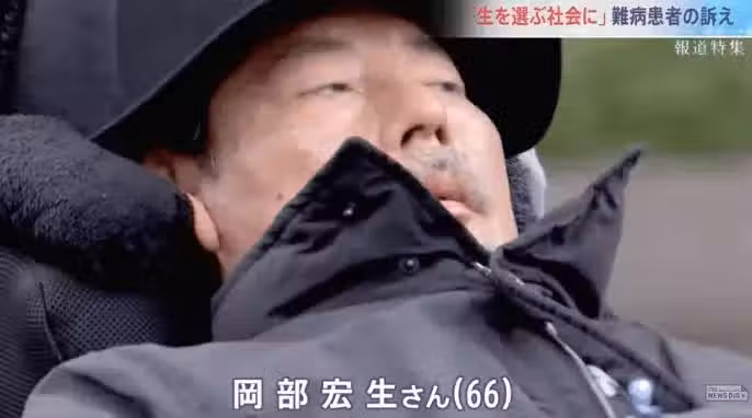 岡部宏生患有漸凍症18年,目前已不能說話,只有眼睛能動。