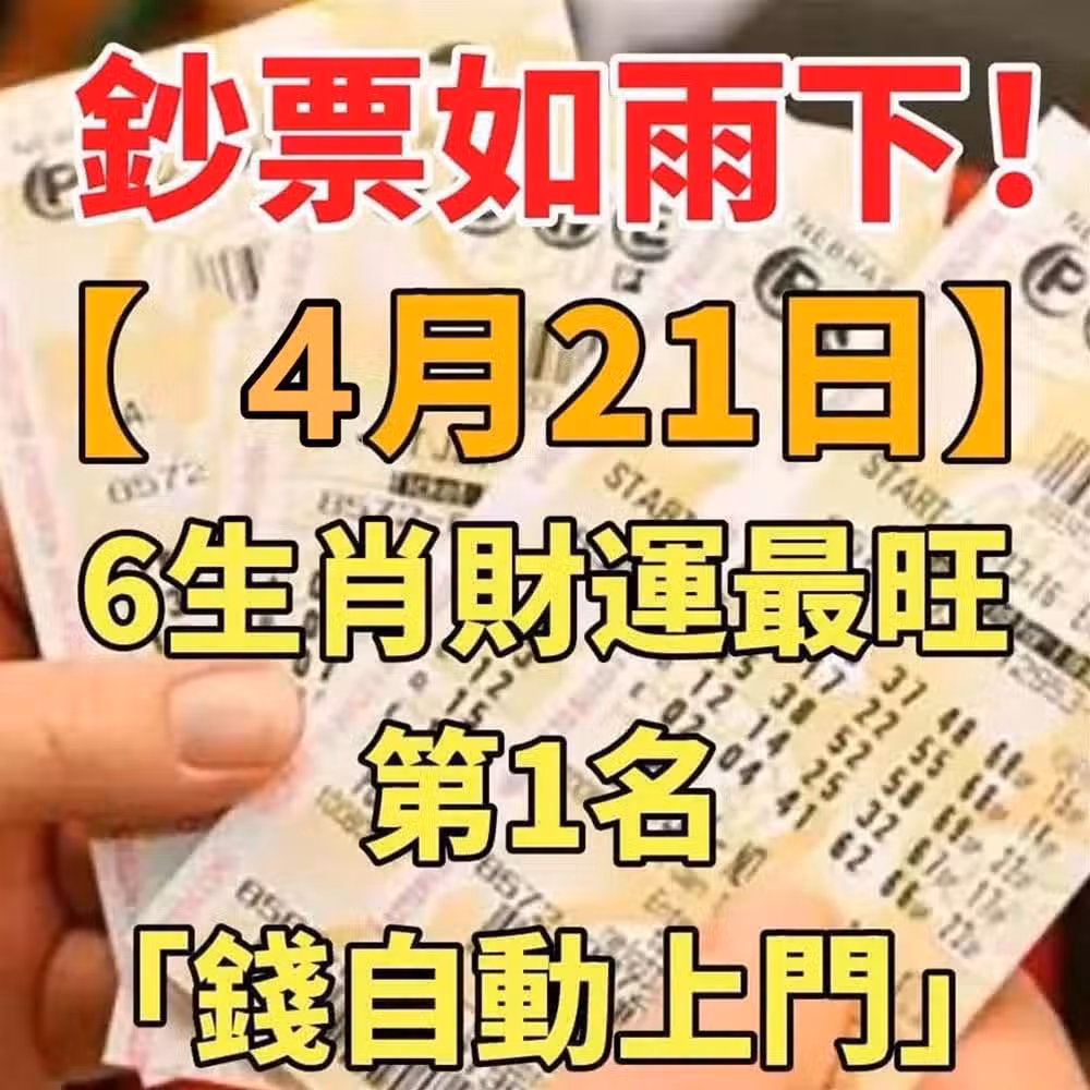 鈔票如雨下【4月21日】6生肖財運最旺,第1名「錢自動上門」