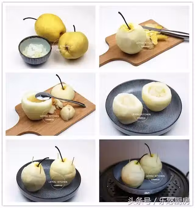 第六步:放入蒸鍋中蒸45分鐘左右即可。(蒸好後還可以往梨中放一點枸杞,然後再燜5-10分鐘,味道更好哦)