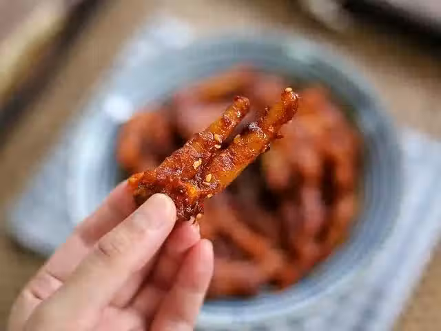 因為對韓式辣雞爪的執念,後來終於學會了它的做法,關於配方的來源,還是根據某次看韓國綜藝里學來的,當時一位藝人在節目裡就分享出了自己做韓式辣雞爪的過程,跟著學做一番後,終於明白為什麼那些韓國人吃這雞爪的時候,會滿臉享受了,因為真的真的很好吃,醬香濃郁,微辣中透著一絲香甜味,而這個甜並不會讓你覺得很突兀,反而是點睛之筆,因為剛入口是甜,細細品味後會由甜轉鮮,是一個很神奇的過程。