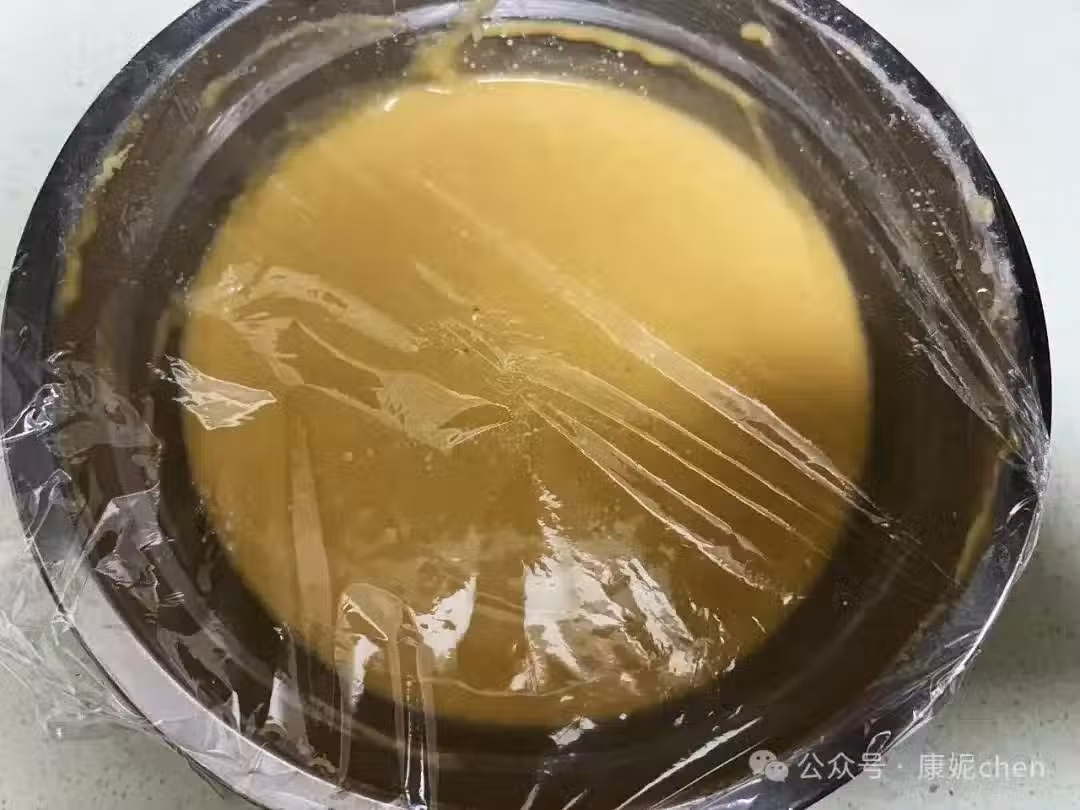 第五步:將麵糊用保鮮膜覆蓋著進行發酵。