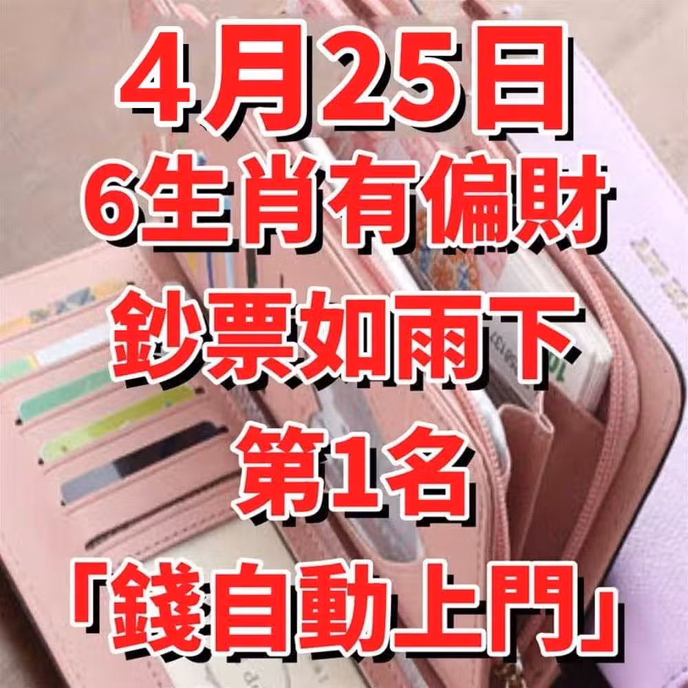 4月25日有偏財,鈔票如雨下的生肖! 第1名「錢自動上門」