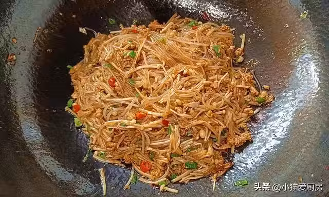 (4)為了保持粉絲的彈性和口感,還有金針菇脆嫩的口感,不要炒得過久。