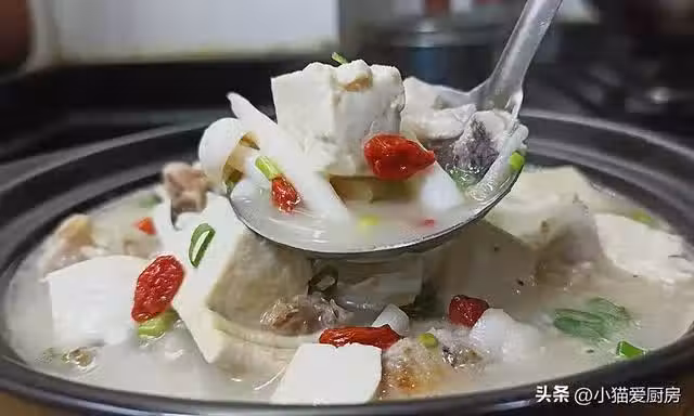 老媽教做的魚頭豆腐湯就是好喝,湯汁奶白,沒有一點腥味,特別香