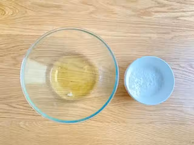 5、糖粉分3次加入到蛋白碗內,一直用高速攪打,打到蛋白霜可以拉出小彎鉤狀即可,如下圖所示。糖粉也可以用細砂糖替代。此時烤箱預熱130度上下火