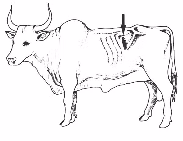 簡單地說就是避免瘤胃開口後殘渣進入腹腔,直接將胃和皮膚縫合,再在這個孔裡安裝一個法蘭筒,等牛的皮膚與胃之間的縫合長好了之後就可以正常使用了,正常情況下法蘭筒都是蓋上的,因為牛的瘤胃需要一個厭氧環境。