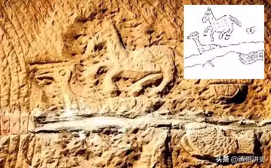 浙江龍游石窟的「天馬行空」圖裡,馬的腳下正是烏鴉