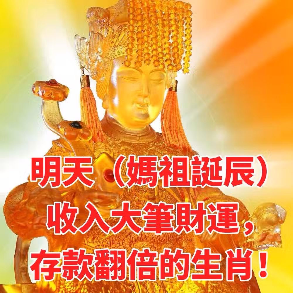 明天(媽祖誕辰)收入大筆財運,存款翻倍的生肖!