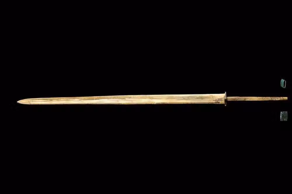除此之外,秦劍的韌性也極為出色。 兵馬俑坑中有一把青銅劍,在被發現時已經被一座倒下的兵俑壓彎成了45度角。當時的考古隊員看見之後,也只能略表遺憾。