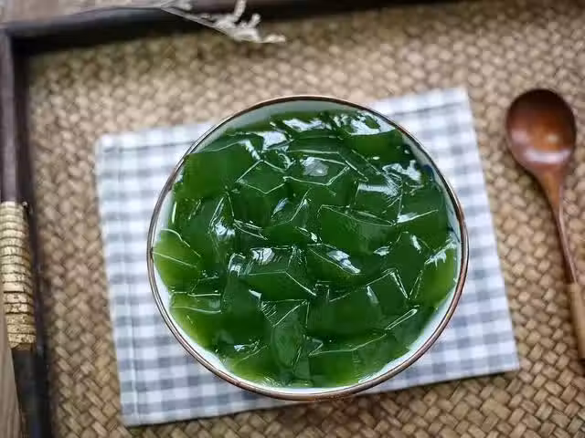 2、做好的黃瓜凍可以直接吃,也可以泡在椰奶里食用,口感會更佳