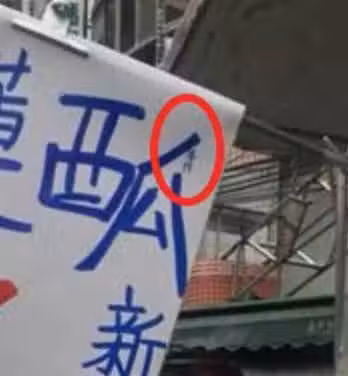 圖片來源:臉書社團「爆廢公社」,下同。 這張照片一放大之後,就可以看到,右上角的「瓜」字附近,竟然寫了超級無敵小的「半斤」,讓大家笑翻,傻眼表示:「老闆太有才了吧?這個字小到根本看不見啊!」