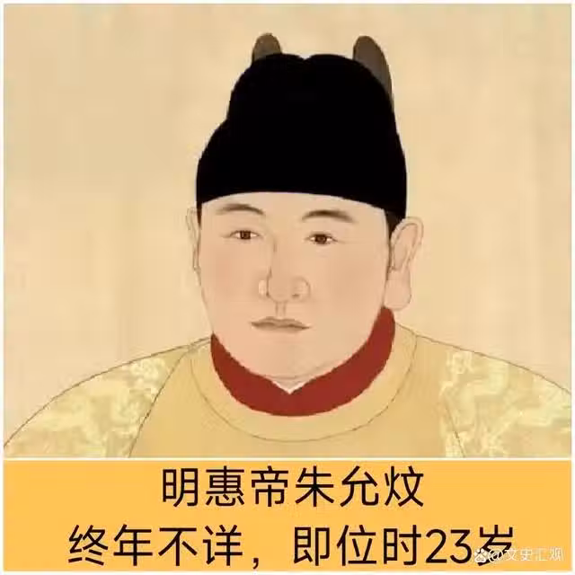 建文帝朱允炆(1377年12月5日-?),是明朝第二代皇帝,年號「建文」,諡號「嗣天章道誠懿淵功觀文揚武克仁篤孝讓皇帝」,廟號「惠宗」,明太祖朱元璋之孫。在位期間進行一系列寬政、削藩的改革,史稱「建文改制」。