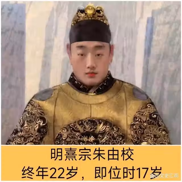 明熹宗朱由校(1605年12月23日-1627年9月19日),明光宗長子,明朝第十五位皇帝,在位時間七年,年號天啟。明光宗即位僅一個月就駕崩了,朱由校匆匆登位為帝,朱由校當時僅16歲,未曾被立為太子,甚至未接受過正規教育,政事皆賴宦官輔佐,後來造成了太監魏忠賢等人的干政,與閹黨、東林黨之黨爭。